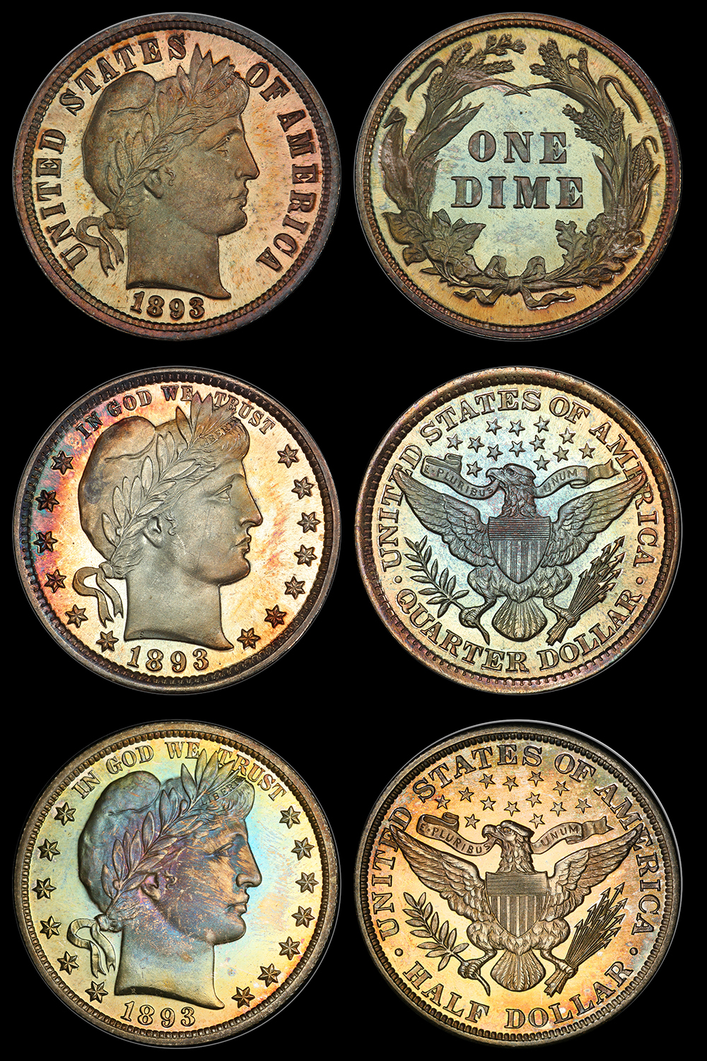 1893 10C 25C 50C Barber PCGS PR66CAM 67CACM 67+CAM (CAC)