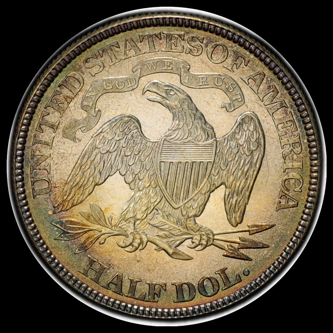 1839 50C Half Dollar Liberty Seated, No Drapery PCGS AU53 (CAC) BEAUTIFUL COLORS!