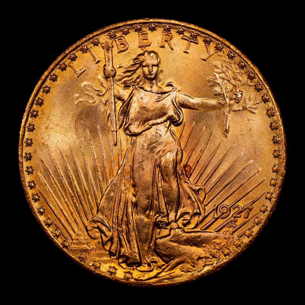 1927 $20 Gold St Gaudens Motto CACG MS65+ (CAC) NICE!