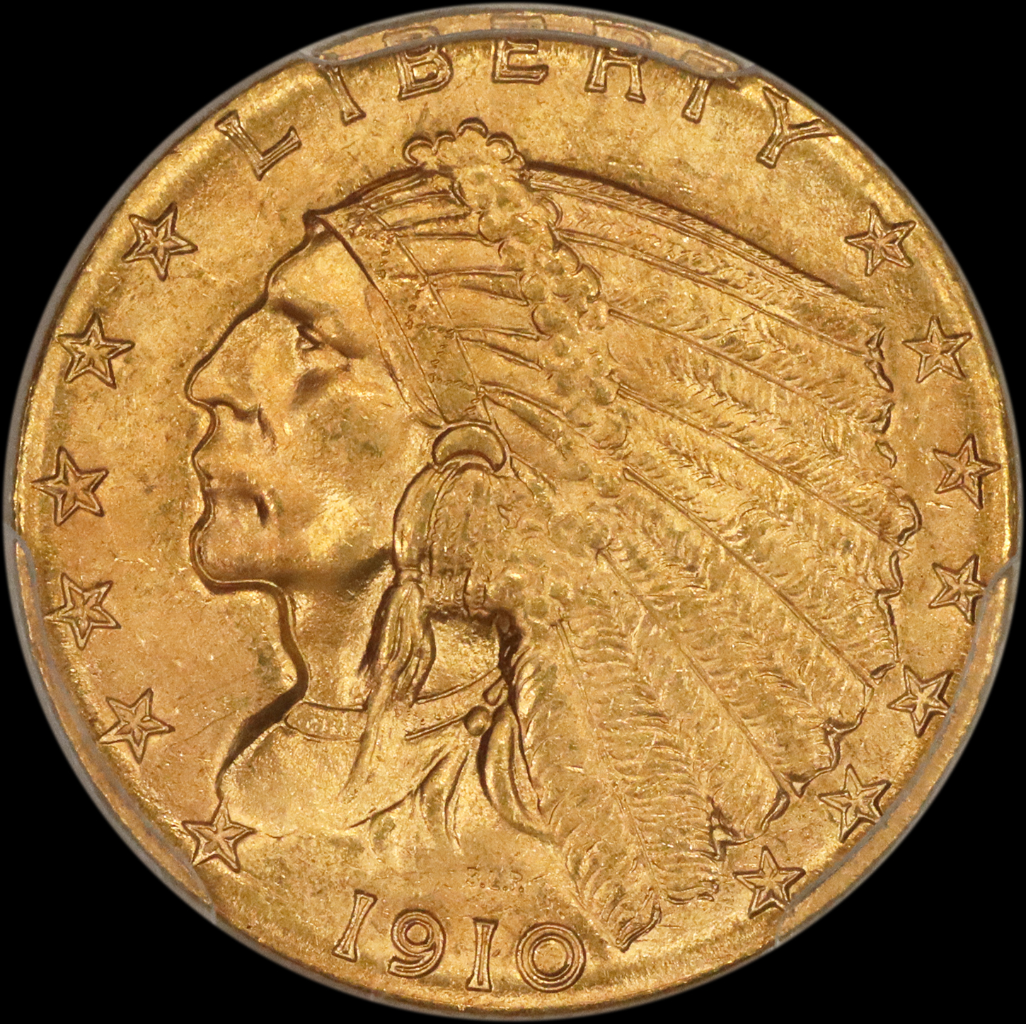 1910 $2.50 Gold Indian PCGS MS65+ (CAC) SUPERB!