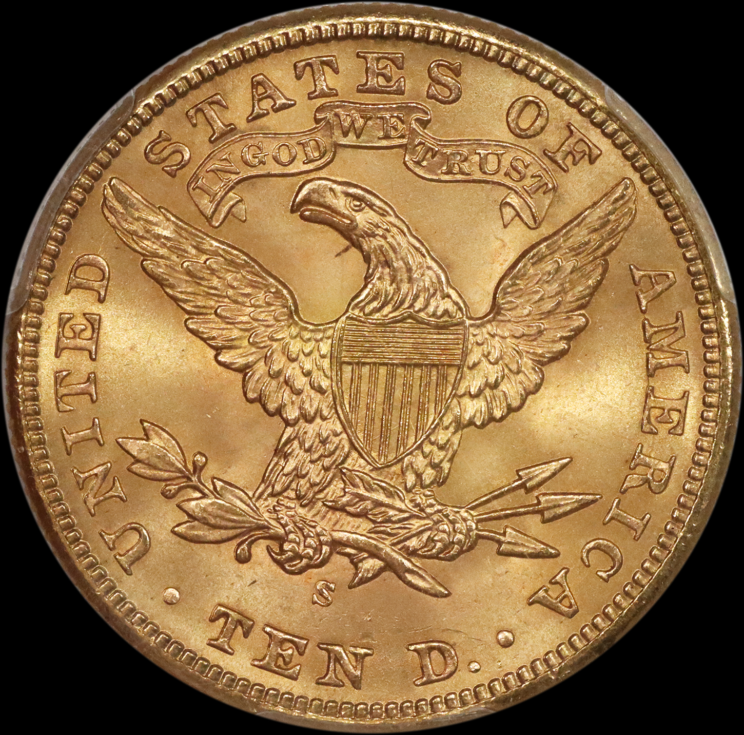 1869-S $10 Gold Liberty With Motto PCGS AU55 (CAC) SUPERB! FAIRMONT