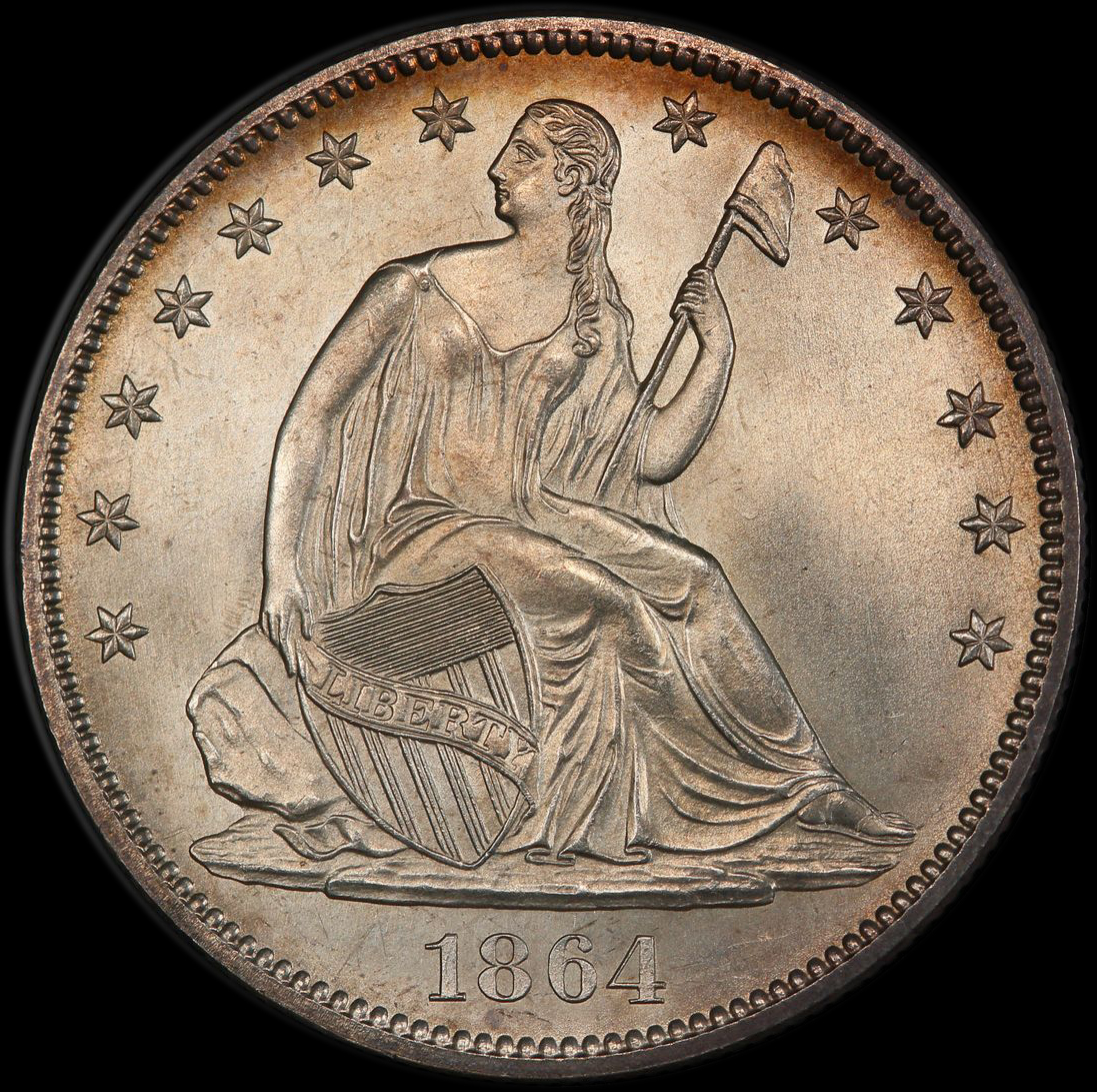1864 50C Half Dollar Liberty Seated, No Motto PCGS MS67 (CAC) IMPRESSIVE