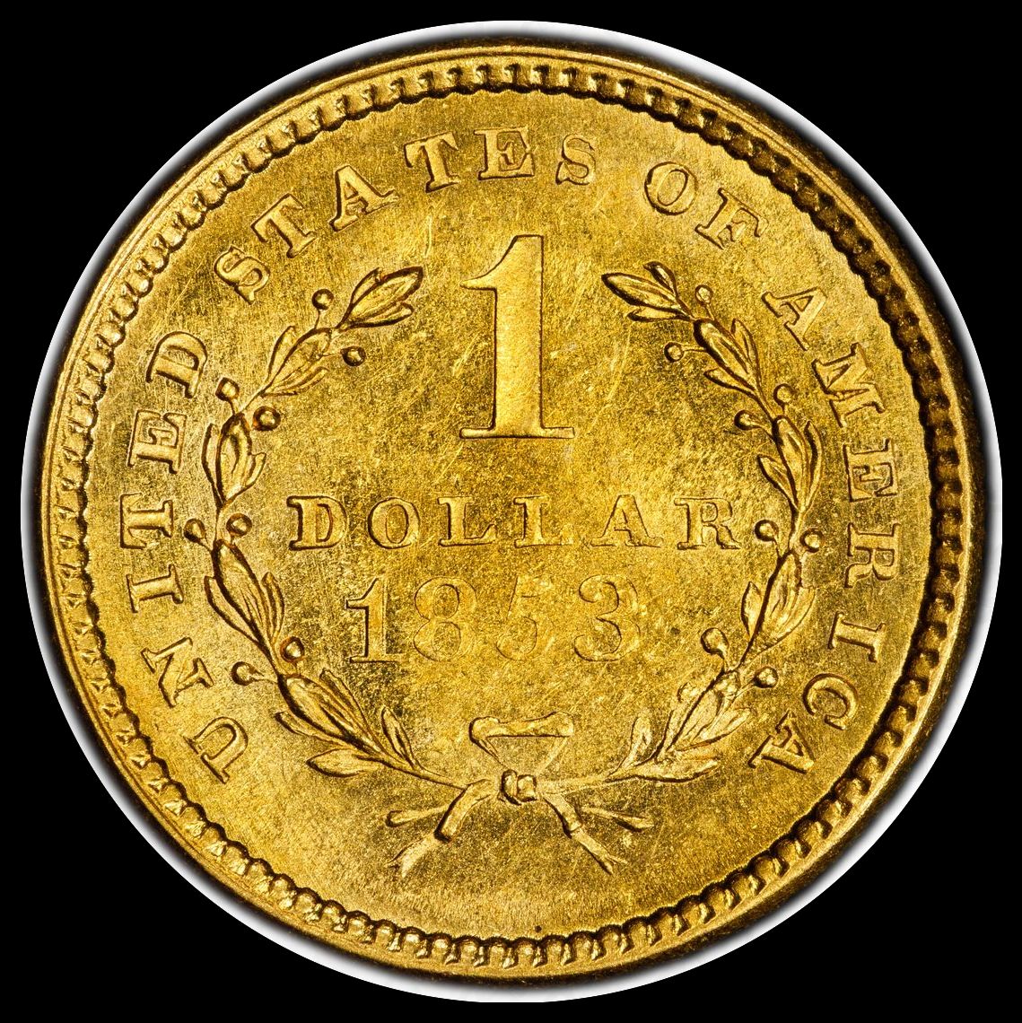 1853 $1 Gold Dollar Type 1 PCGS MS65+ (CAC) SEMI-PROOFLIKE!