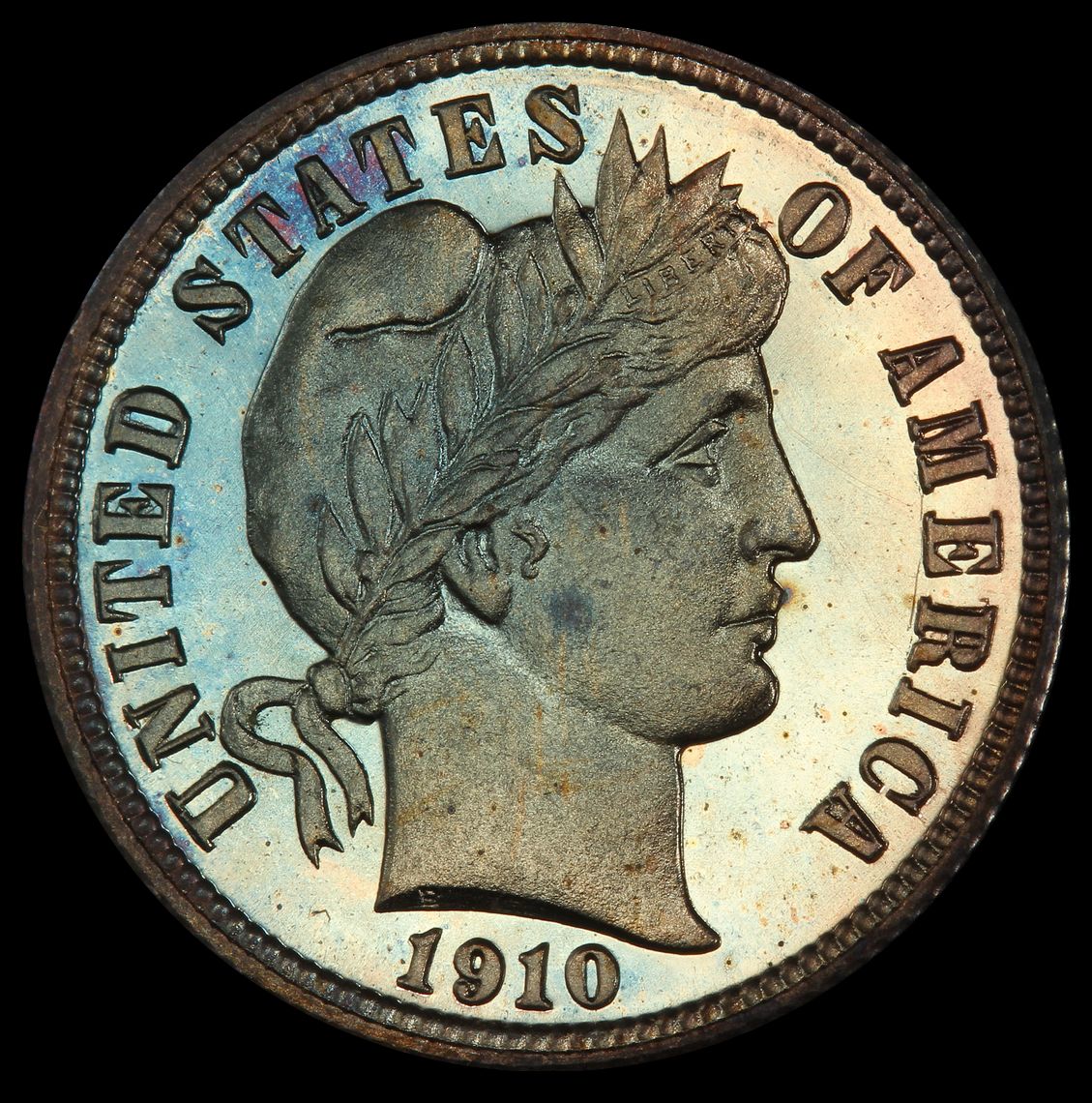 1910 10C Dime Barber PCGS PR68 (CAC) A 68.9+++ EX SIMPSON