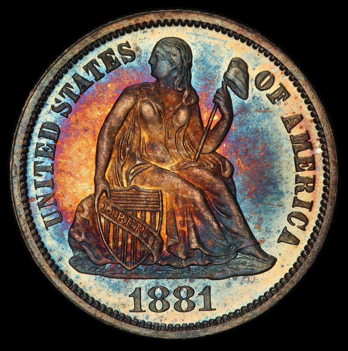 1881 10C Dime Liberty Seated, Legend PCGS PR67 (CAC) POWERFUL!