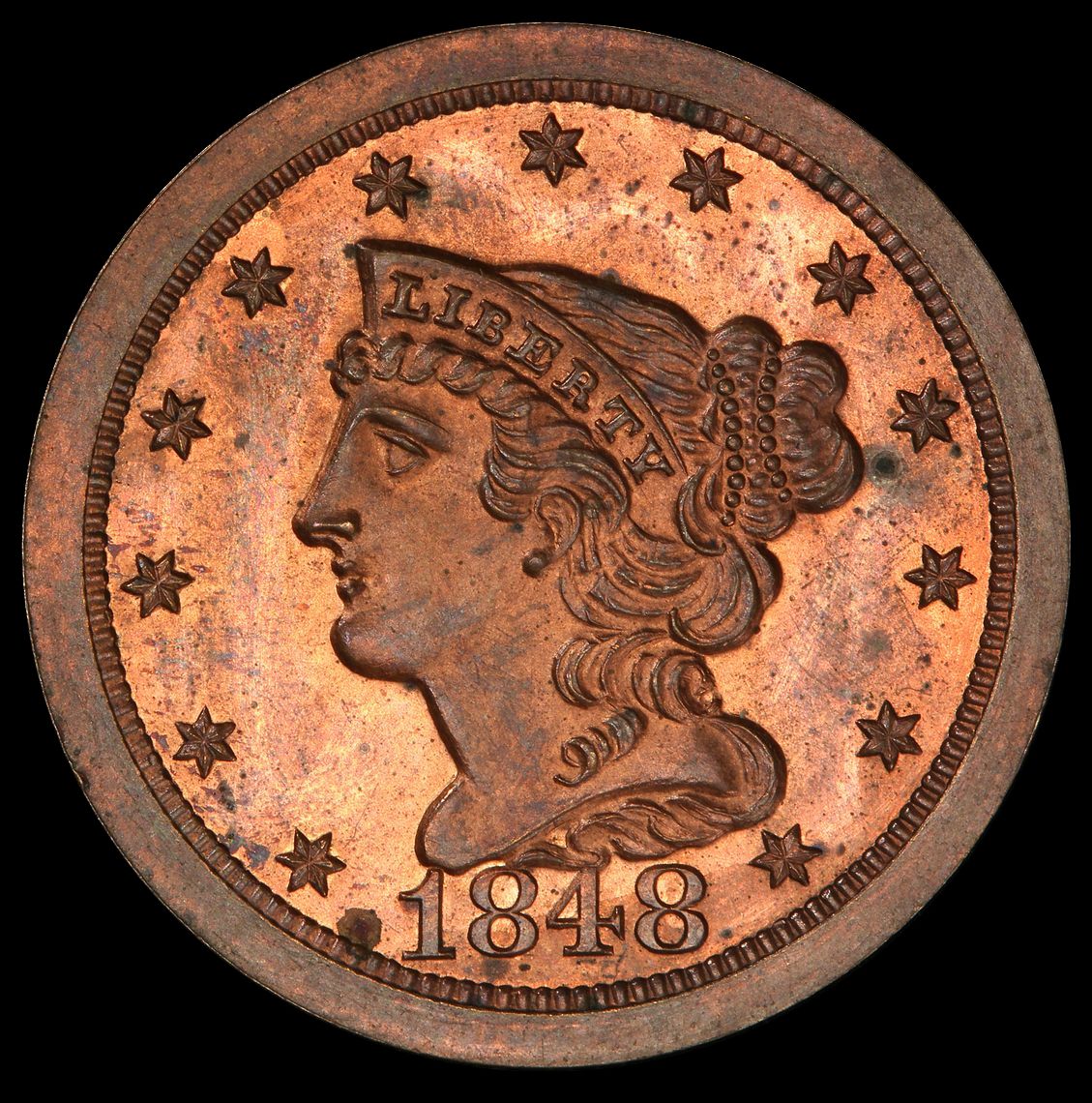 1848 1/2C Half Cent Braided Hair Original PCGS PR65RB (CAC) MISSOURI CABINET