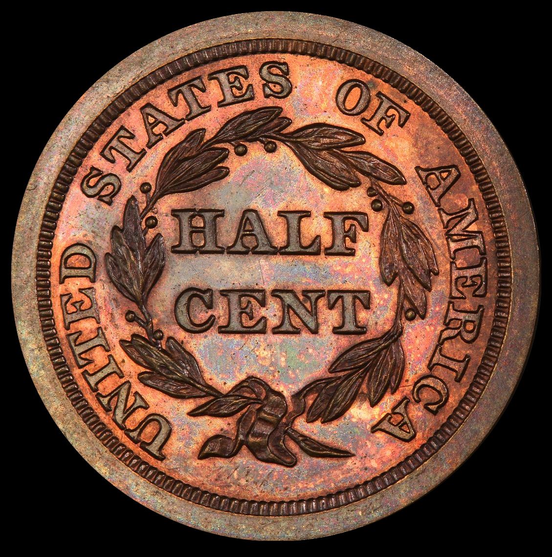 1852 1/2C Half Cent Braided Hair Restrike, Rev of 1856 PCGS PR64BN (CAC) NICE!