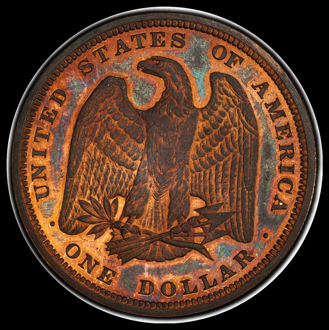 1880 Pattern J-1655 Silver $1 PCGS PR66RB+ (CAC) MONSTER COLORS!