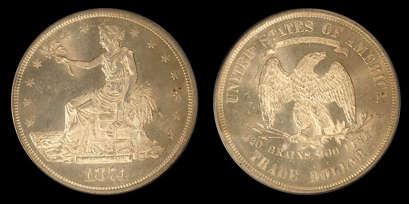 Having handled all of the finest known Trade Dollars and most of the PCGS GEMS, we know what these coins should look like. And yes, 1874 does come a little nicer-but this coin looks as good as many full MS65’s we have ever seen!