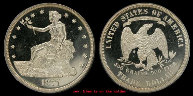 ONLY 510 were minted. PCGS 13, NGC 11, CAC 4. The last PCGS/CAC coin to sell in major public auction brought $5,463.00 12/10 Heritage. This coin is worthy of any GEM full black and white Trade Dollar Proof set!