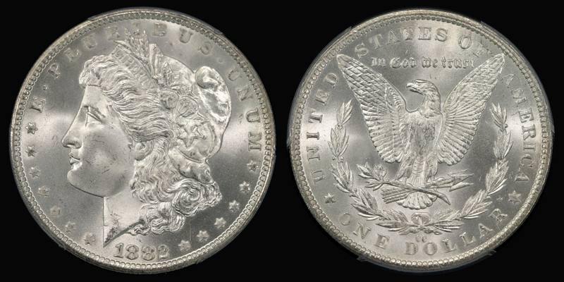 The surfaces are incredibly flawless. Even with a strong glass you won’t be able to find any problems. A full booming luster shows off the ORIGINAL creamy white color. Miss Liberty and the details are thickly frosted and have sharp strikes. There is a small frost break on her high cheek. We grade the reverse FULL MS67. The eye appeal is gorgeous!