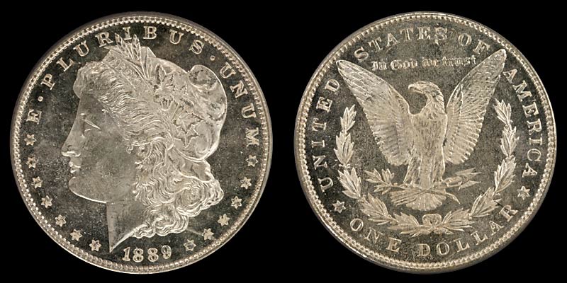If this coin had just a little more contrast, it probably would be worth $25,000.00! The mirrors are a full 8″+ deep and have amazing clarity for the date (there is a faint hint of milkiness). This is highly unusual for an 1889. There are just a few trivial teenie ticks scattered about-none that affect the grade (this definitely is NOT a 64 in a 65 holder). Miss Liberty and the details are well struck (you can see hints of a rusted rev die). There is a decent amount of silvery frost visible. The overall eye appeal is great. We do NOT believe the current pops are correct. This is not a date you see often in GEM DMPL. PCGS 31, NGC 14. CAC is extra critical about what DMPL’s it stickers-and this one made it easily!