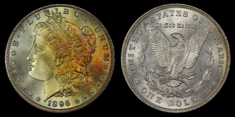 PCGS 108, NGC 66, CAC 30. The last PCGS CAC piece to sell in auction brought $5,288.00 11/2013 Heritage. Prior to that, the last one with color sold for $8,225.00 06/2013 Heritage. Opportunity knocks loud here for any color dollar lover!