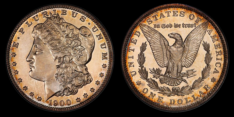 Only with a strong glass can you detect some light and scattered lines. The mirrors are incredibly deep, have amazing clarity, have NO visible imperfections, and are highly reflective. A wonderful mix of golden brown/deep gold covers most of the surfaces. The colors are far from dull and are really eye catching. Miss Liberty and the details are needle sharp in strike and have pale light silvery frost. The eye appeal is magnificent!