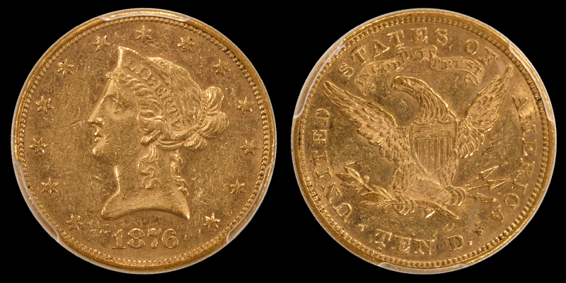 ONLY 687 pieces were ever minted. PCGS 2, NGC 5, CAC 1. NOTE: the ONLY coin graded higher by PCGS: the MS60 that resides in the Simpson collection. If you are a rare date gold hound or are building a $10 Liberty set, its unquestionable once this piece leaves the market, your not going to see anything remotely similar for years. The ONLY date rarer-is the impossible 1875 (100 minted).