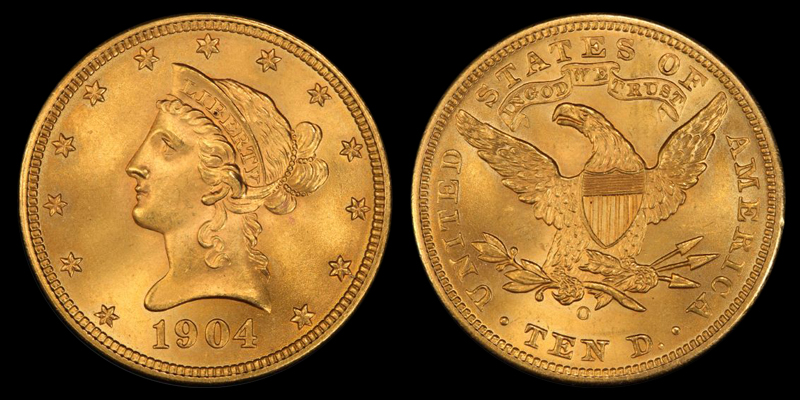 At first glance, this stunning piece reminds you more of a 1901S then a 1904O. The surfaces are remarkably pristine. Even with a strong glass and a super long look, you will NOT find ANY problems of ANY size, ANY where. The surfaces not only a super satiny, but they have a full bold luster. Both sides enjoy totally ORIGINAL pale orange/pale greenish gold colors. There are NO spots or discolorations. This coin has NOT been dipped. Miss Liberty and the details are frosty and have crisp strikes. The eye appeal is awesome!