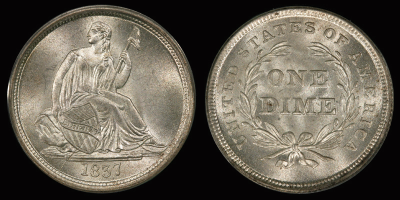 10C 1837 NO STARS PCGS MS67 LARGE DATE