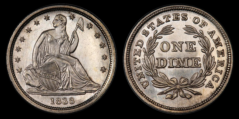 10C 1838 PCGS MS65 ND SMALL STARS PCGS MS65