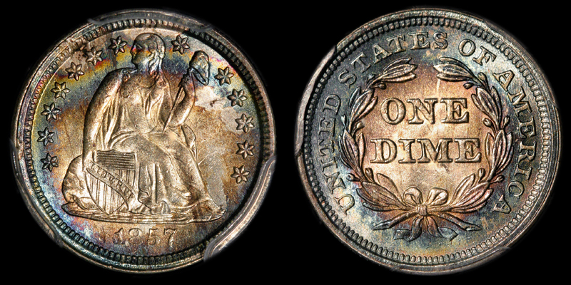 If you use a really strong glass you’ll find some every trivial and scattered ticks-nothing worse. Overall, the coin is VERY clean and has satiny surfaces. A beautiful circular pattern of ORIGINAL blue/lime opens into lighter white/pale gold centers. There is a little streakiness to the colors. Miss Liberty and the details are as sharply struck as you will ever see. The eye appeal is that great!