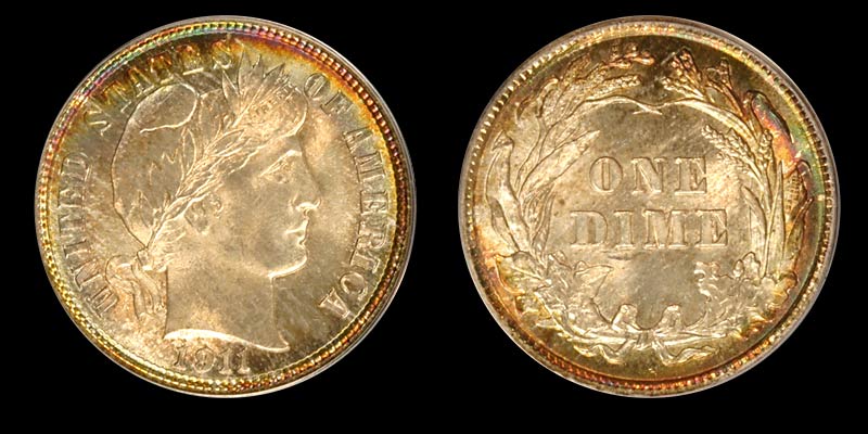 The northern light have nothing on this GEM! The colors here dance more vivid. Electric bands of golden brown/sky blue/pale violet frame the rims only. The centers are a light golden brown. There are zero impairments anywhere. A full booming luster also highlights the sharply struck features. We did place the MS68 years ago into the Law Collection. If we hadn’t seen that coin ourselves, we would call this the finest known! PCGS 12, NGC 15.