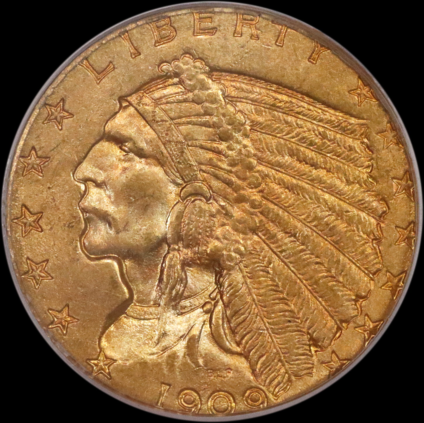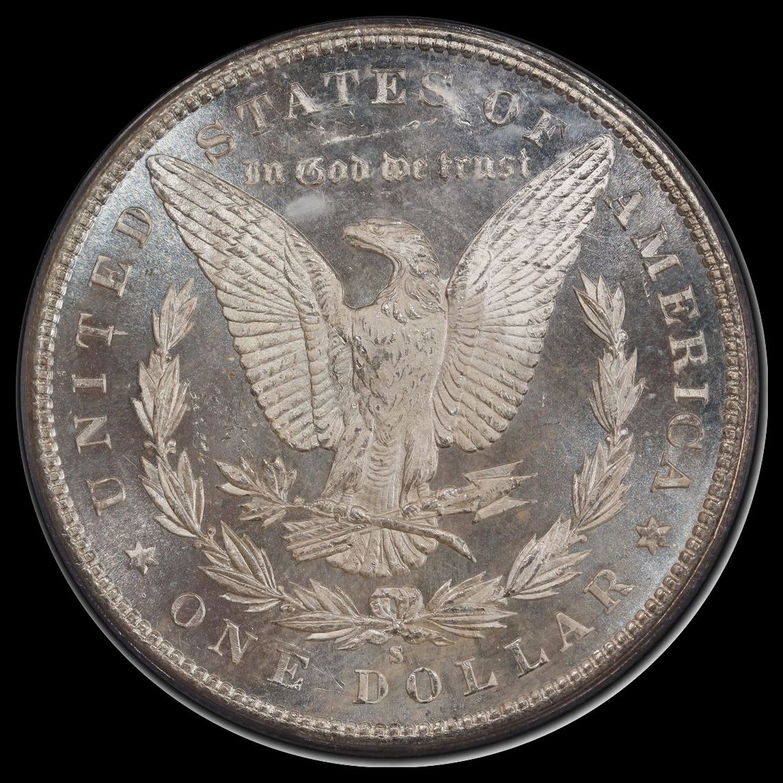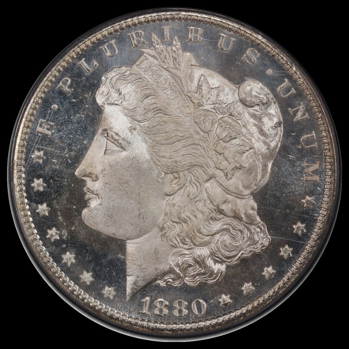 We looked at this coin as long and hard as we could (using a strong glass)-there are NO marks of ANY size, ANY where! The mirrors are crisp, deep, clear, and have bold reflectivity. A gorgeous ORIGINAL light to moderate mix of lemon/pearl green/gold colors swirl around parts of the obverse. The reverse has some light gold. Miss Liberty and the details are needle sharp in strike. The eye appeal is beautiful!