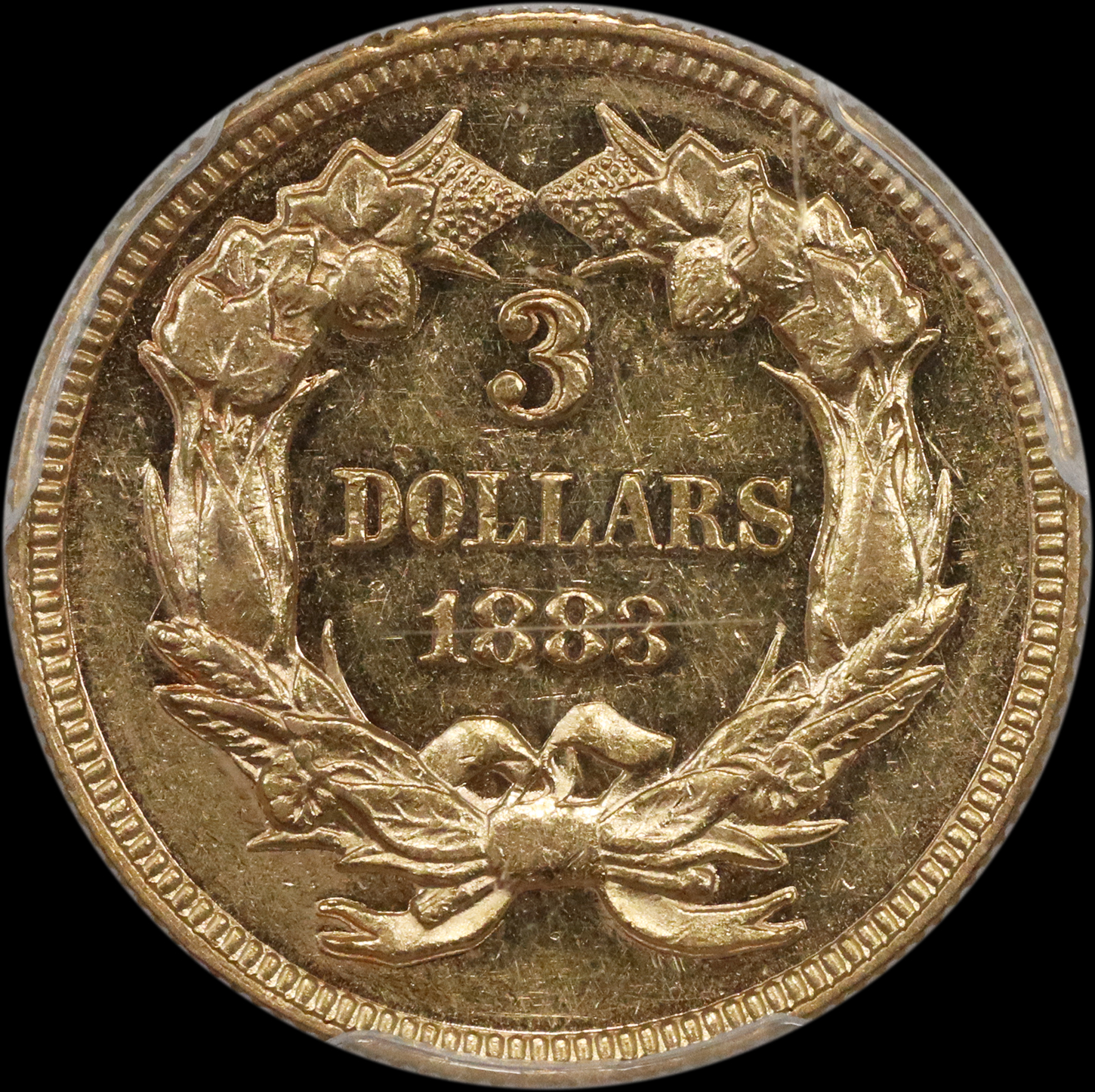 1883 $3 Gold PCGS AU55 (CAC) SEMI PROOFLIKE!