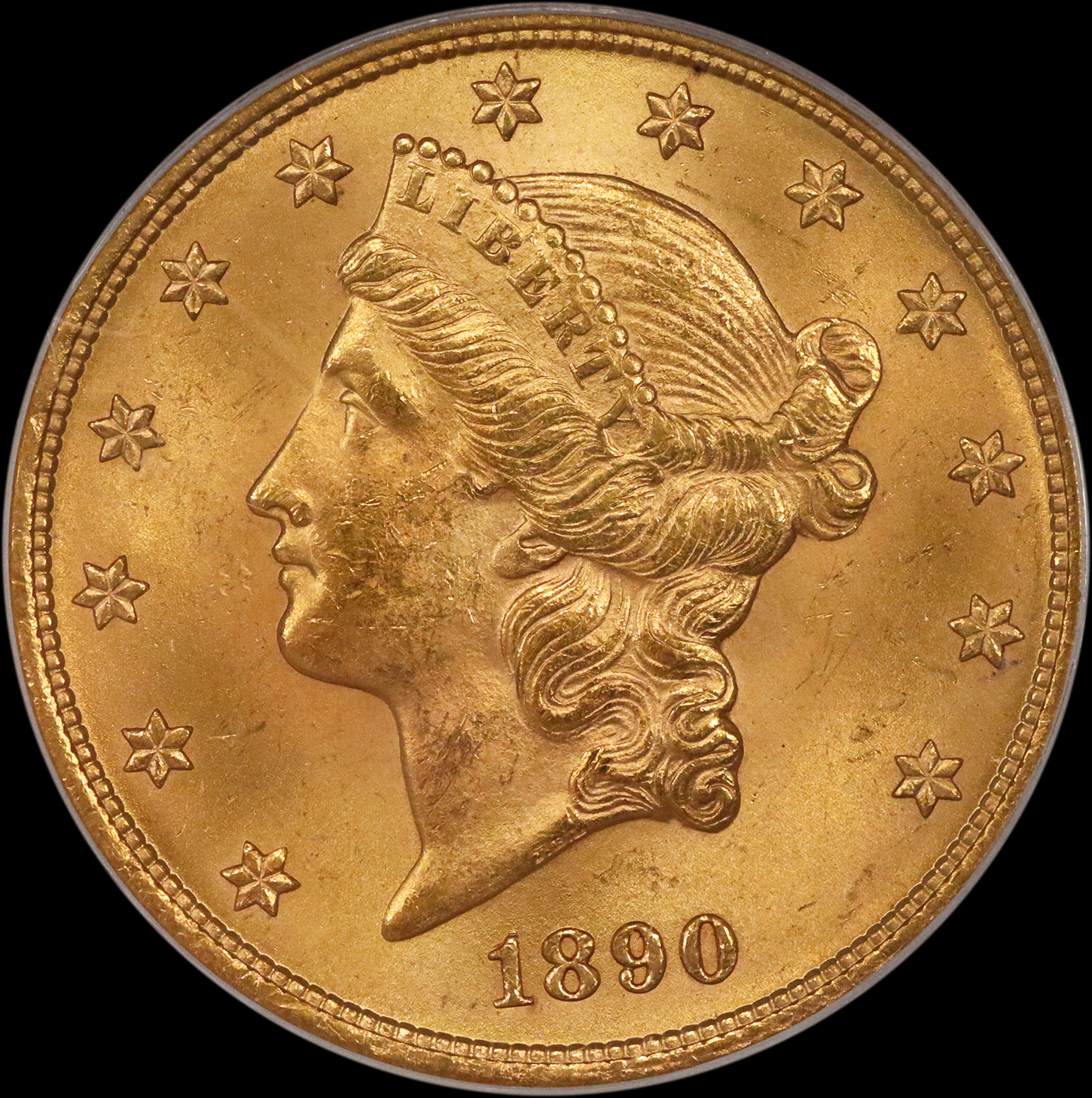 1890 $20 Gold Liberty Type 3 PCGS MS64+ (CAC)
