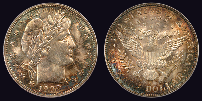 High end and beautiful! Both sides are lustrous and appear clean. A stunning mix of blue/golden brown/violet swirls all over. The toning across the face is light and streaky-thus may appear as lines (which they are not). Miss Liberty and the details are sharply struck and do every much stand out. PCGS has graded only 5 coins higher. PCGS 8, NGC 3.