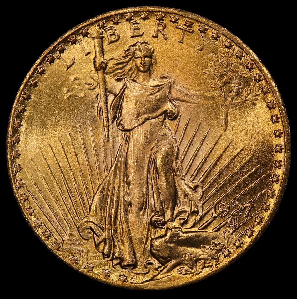 1927 $20 Gold St Gaudens Motto PCGS MS66 (CAC) INTENSE LUSTER!