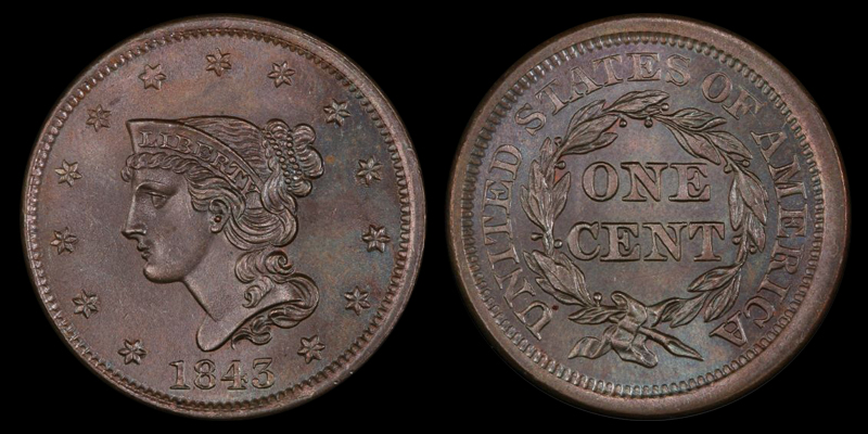1C 1843 PETITE HEAD PCGS MS65BN N-4