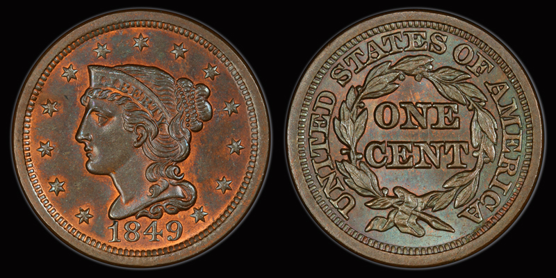 1C 1849 PCGS MS66BN N-4 NAFZTGER