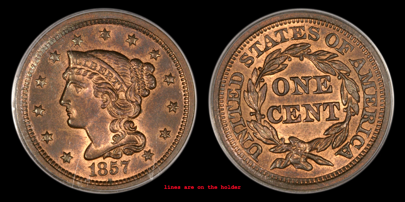 1C 1857 PCGS MS65RB SMALL DATE