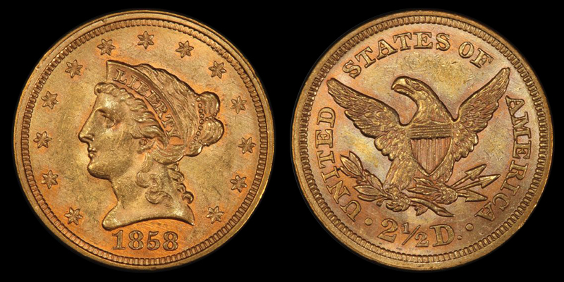 $2.5 1858 PCGS MS63