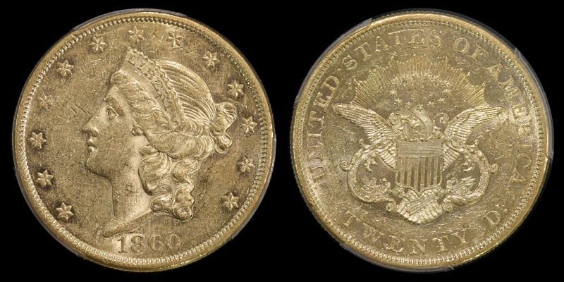 $20 1860 PCGS AU55