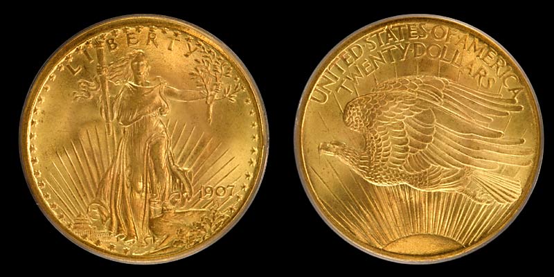 Br>We probably have seen or handled most of the pop of 9 pieces graded by PCGS. We unhesitatingly rank this coin #1! We will stop making that claim if anyone can show us a better 1907. Its impossible to top this coins virgin surfaces. Only under a glass can you even see the faintest hint of a tick-that how clean and satiny it is. The color is a killer even light orange gold. There are NO spots or discolorations. Miss Liberty and the details are very well struck and have light frost. The eye appeal is phenomenal! We truly believe this coin is a borderline MS68. If you don’t like this piece, then you will never see an MS67 you will like! PCGS 9, NGC 6.