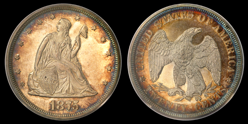 Only a few scattered and light wispy lines keep this coin from a PR64 CAC designation. The mirrors are deep, clear, and have extra strong reflectivity. There is a thin band of blue/gold framing the rims. Miss Liberty and the details are sharply struck and have generous silvery white frost. The eye appeal is gorgeous!