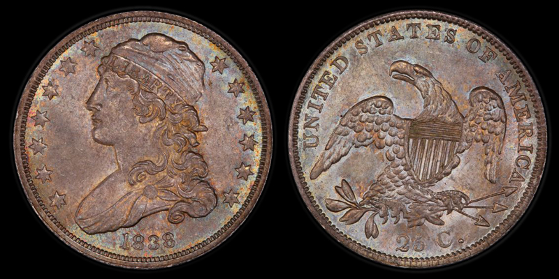 Surprisingly lustrous surfaces have an a bold intensity seldom seen on these. You can clearly see the surfaces are and how clean and satiny smooth they are. Even with a glass there are NO imperfections to be found. Both sides are evenly covered by a luscious moderate ORIGINAL mix of lilac/lime/blue/pale golden brown colors (the image makes them look darker). Miss Liberty and the details are sharply struck. The stars do exhibit some weakness. Still this coin is a stone bold GEM, EVERY time! The eye appeal is beautiful!