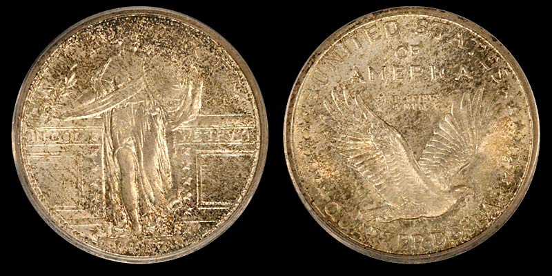 “AS STRUCK” Simply means the strike is not worn and looks every bit as full as it did the day it left the Mint. Also, the coin is virtually perfect (we still haven’t found any problems using a strong glass). A strong luster also shows off a moderate mix of golden brown/pale olive toning that is scattered about. Miss Liberty and the details are FULLY struck and appear boldly to the naked eye. No question this is a completely original high end GEM. PCGS 55, NGC 59. At the PRE FUN Stacks auction, one sold for $5,750.00.