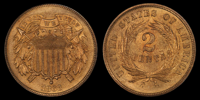 2C 1868 PCGS MS66RB
