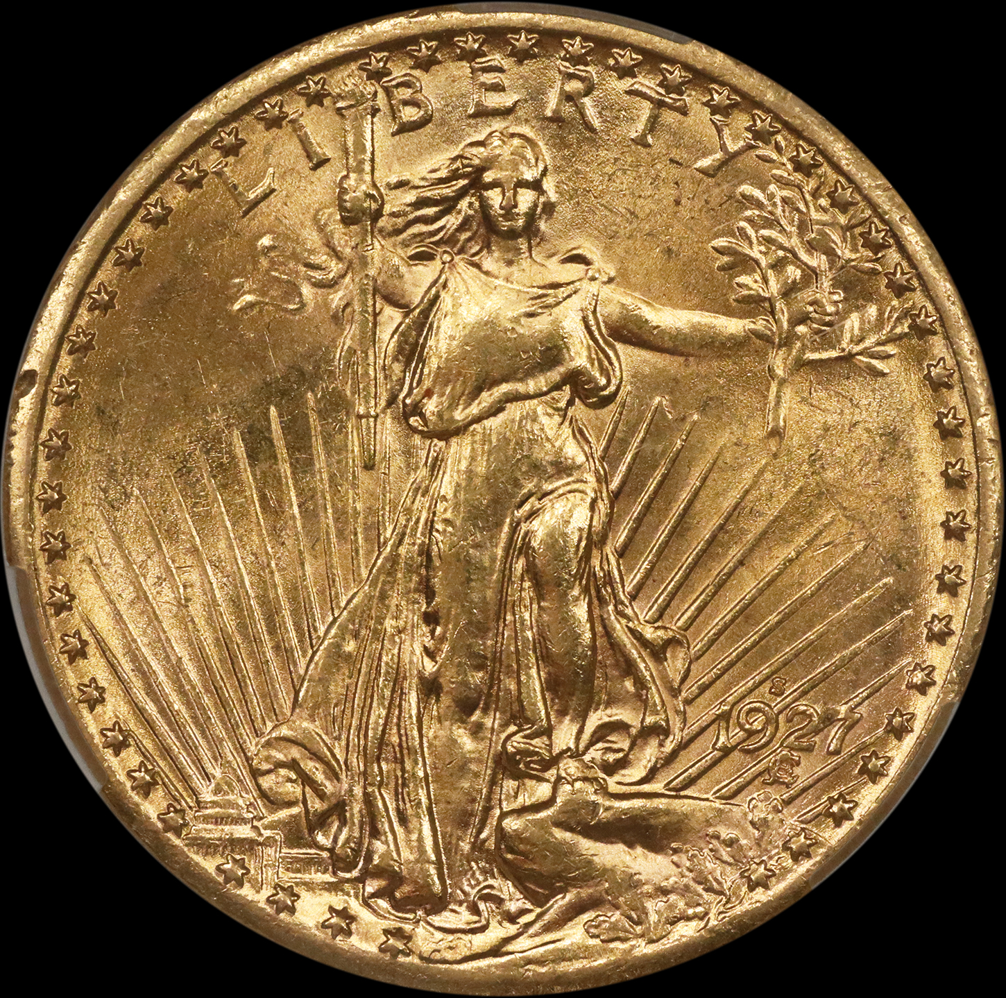 Above average surfaces reveal just a few light and scattered ticks and frost breaks. Even using a strong glass there is nothing harsh to find. There actually is a strong luster. The color is a rich original yellow gold. There are NO spots or stains. Miss Liberty and the details are frosty and have sharp strikes. The wear is very light. The eye appeal is exceptional!