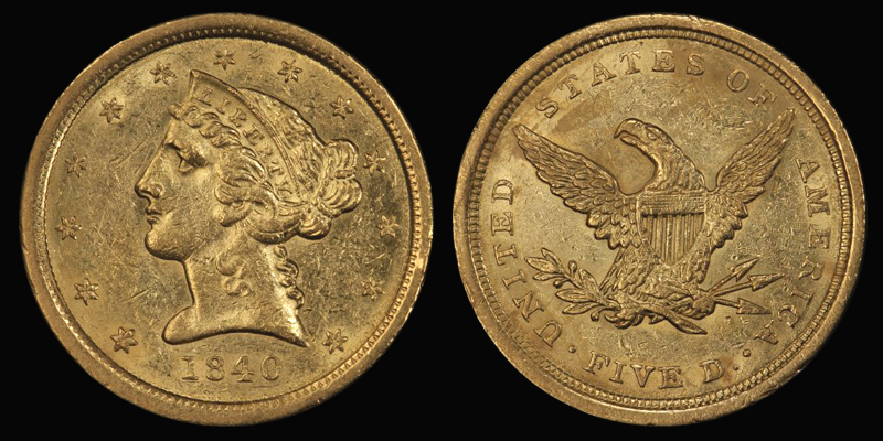 $5 1840 PCGS AU58