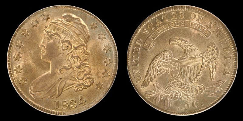 50C 1834 LG DT SMALL LETTERS PCGS MS-64
