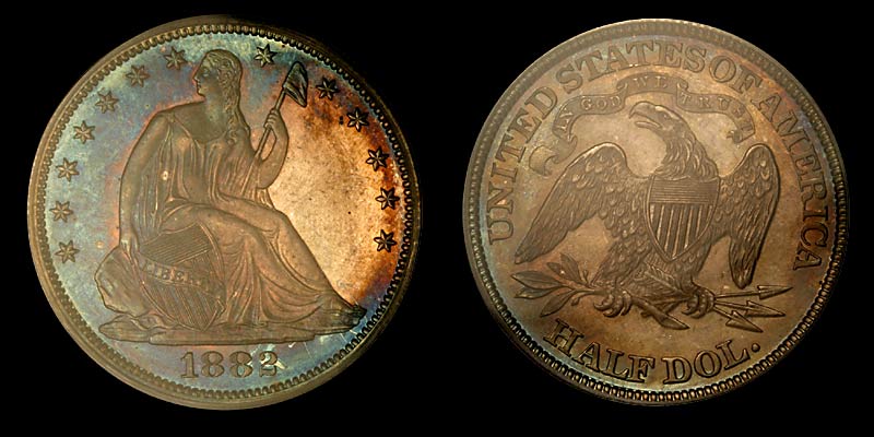 Superb in every respect! This coin is as original as original can be. Clear, glittering clean mirrors offer strong reflectivity. A moderate mix of soft navy/champagne/russet colors form a crescent on both sides. Miss Liberty and the details are fully struck. A terrific looking GEM! PCGS 21, NGC 17.