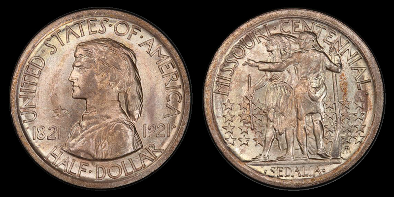 50C 1921 MISSOURI 2X4 PCGS MS65 GUTTAG