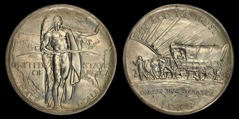 50C 1938 OREGON PCGS MS67+ GUTTAG
