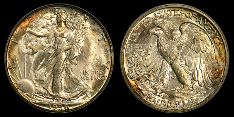 Overall, the surfaces are extremely clean and smooth. The dreaded right field has on very tiny light scrape that’s well hidden. A full satiny luster provides strong blast for the neat original colors. Splashes of reddish gold/pale olive/gold/silver swirl evenly all over. The originality of this coin is unquestioned. Miss Liberty and the details are fully struck. The eye appeal is fantastic!
