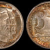 Incredibly clean and smooth surfaces are a joy to behold. Search forever with a strong glass and you won’t find any flaws. Unquestionably ORIGINAL and cardboard type toning is plashed over the surfaces. Rich but slightly iridescent colors of golden brown/deep green/pale purple are scattered about. ALL of the details are exceptionally well struck and are devoid of the typical “mushy” areas. The eye appeal is terrific!