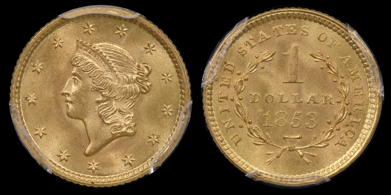 G $1 1853 PCGS MS67