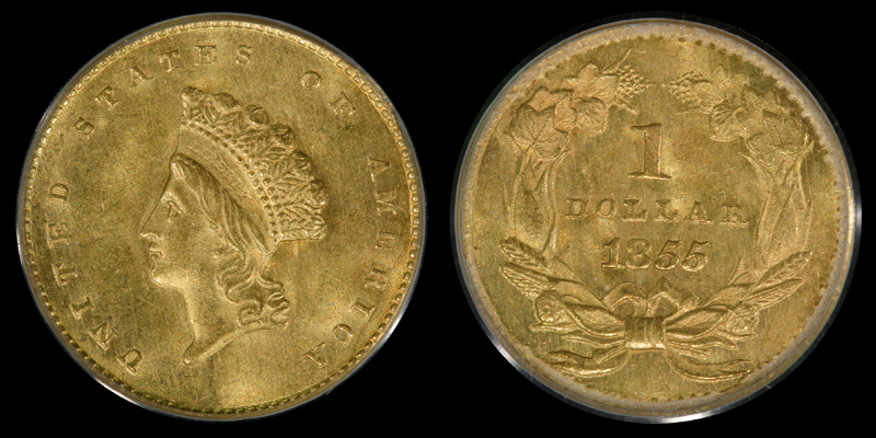 G $1 1855 PCGS MS64+