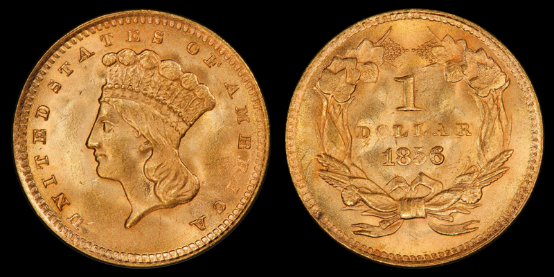 G $1 1856 PCGS MS65 UPRIGHT 5